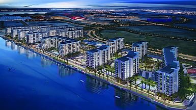 About Water's Edge: Completed and ready for occupancy, Water's Edge comprises 13 beautifully designed residential buildings with 2,262 premium residences. Apartments range from compact yet elegant 463 sq. ft studios to expansive 1–3 bedroom homes starting from 581 sq. ft. All units boast balconies providing stunning views of the sea canal and the island's picturesque landscapes.